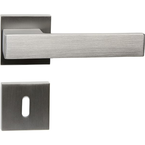 Ajtó vasalat - rozettás, négyzet alakú rozetta, kilincs - kilincs kivitel, beltéri, jobbos ajtóra, zár típusa BB, anyaga spiáter, matt felület, ezüst kivitel Rendeld meg tőlünk a népszerű Richter Czech márka kiváló minőségű RK.C3.MONZA.BB.NIBMAT ajtószerelvényét. A kilincs felülete rendkívül ellenálló és szilárd, még gyakori használat esetén is garant