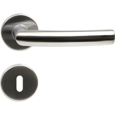 Ajtó vasalat - rozettás, kerek rozetta, kilincs - kilincs kivitel, beltéri, jobbos ajtóra, zár típusa BB, anyaga rozsdamentes acél, matt felület, ezüst kivitel Rendeld meg tőlünk a népszerű Richter Czech márka kiváló minőségű RK.C-FORM.BB.N ajtószerelvényét. A kilincs felülete rendkívül ellenálló és szilárd, még gyakori használat esetén is garantáltan h