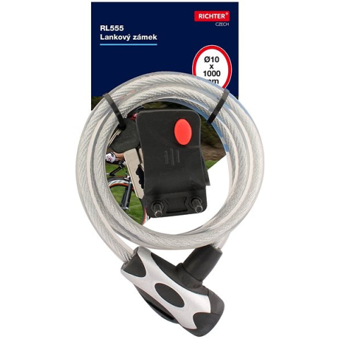 Kerékpár zár - kerékpárhoz, hengerzár 5-csapos zárbetéttel és bevonattal a szennyeződések ellen, szín: átlátszó, a csomag 2 db kulcsot és egy kerékpárfogantyút tartalmaz, nettó tömeg: 0,26 kg Használja kerékpárján vagy motorkerékpárján a Richter Czech RL.555.10x1000.CIR zárral, és akadályozza annak ellopását. Ez egy minőségi kivitelezésű zár 5-csapos zárbetéttel és különleges bevonattal a