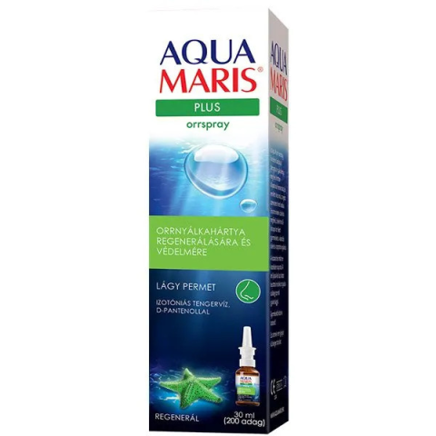 Vény nélkül kapható orvostechnikai eszköz. Tartósítószer- és hajtógázmentes. Az Aqua Maris® Plus orrspray Adriai tengerből származó, ásványi sókban és nyomelemekben gazdag tengervizet tartalmaz, kiegészítve D-pantenollal, amely segíti