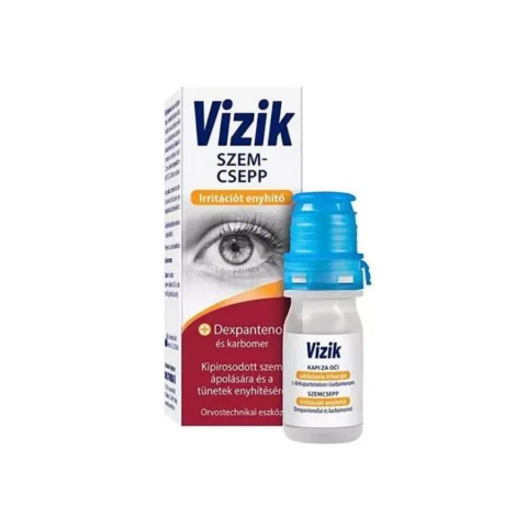 Kipirosodott szem nedvességének fokozására, ápolására és a tünetek enyhítésére. Dexpantenollal és karbomerrel. Kontaktlencsét viselők számára is javasolt. Tartósítószer-mentes. A Vizik irritációt enyhítő szemcsepp egy steril, t
