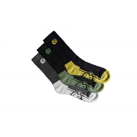RidgeMonkey ApeArel Crew Socks 3Pack zokni Ezeket a klasszikus, közepes hosszúságú zoknikat tökéletes választásnak tervezték, akár rövidnadrággal, akár hosszabb nadrággal hordva, természetesen lábbelik széles választékával. Szuperpuha kompozit keverékből készültek, és a nedvességelvezető COOLMAX® technológiával rendelkeznek, hogy lábait szárazon és kényelmesen tartsák. A vaskos bordázott nyak rész biztonságos illeszkedést tesz lehetővé, a vastag párn