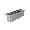 Gasztroedények praktikus egymásra rakható markolattal (külső oldalon mind a négy sarokban), 1/1, 2/3, 1/2, 1/3 GN méretben és 55, 65, 100, 200 mm mélységben kaphatók.
