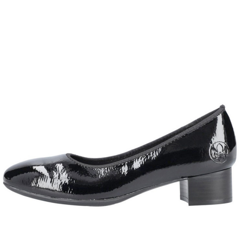 Rieker 49260 04 csinos női pömpsz Belső talphossz: EU 36 37 38 39 40 41 CM 23 23,5 24 24,5 25 25,5 Csinos, divatos, bebújós női pömpsz. Modell: Rieker 49260 04 Szín: black / fekete Felsőrész: természetes lakkbőr Bélés: természet