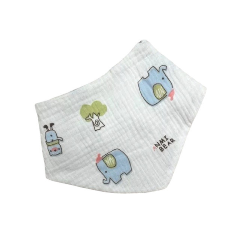 1 kép Rikidor Pamut Háromszög Sál - Fehér/Kék Elefántos
