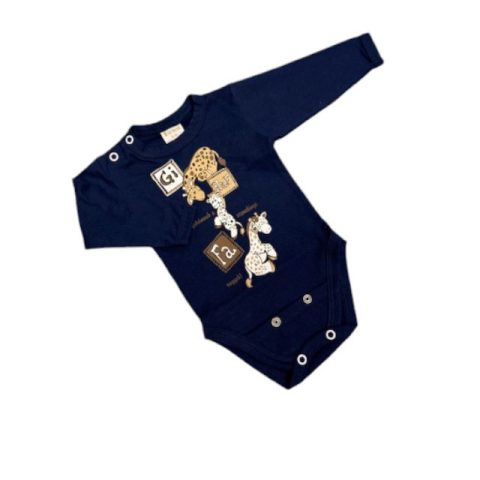 1 kép Rikidor Sötét Kék Zsiráfos Pamut 2 Méretes Hosszú Ujjú Body - 80