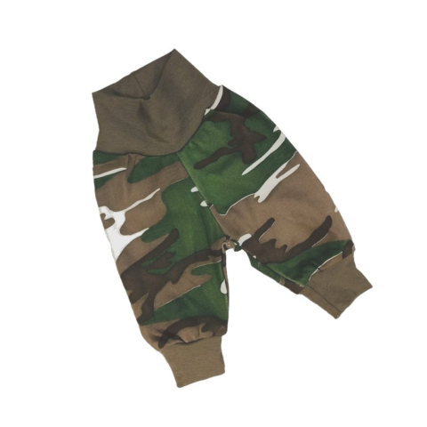 Vagány kis terepmintás nadrág, passzés pocak és boka résszel a kényelmes viseletért babánk számára. Anyaga:100% pamut 30 °C fokon mosható Nem klórozható