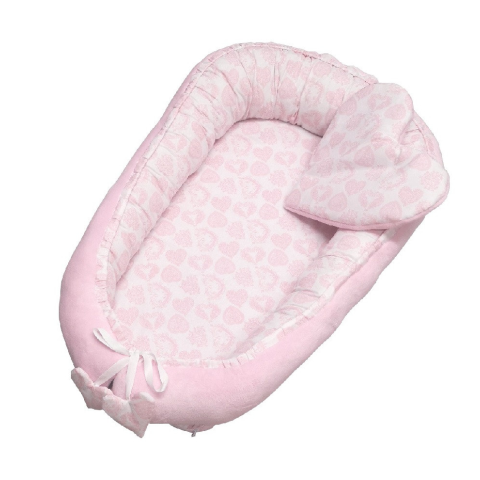 1 kép Rikidor Wellsoft Babafészek vízhatlan szivacsbetéttel - Rózsaszín szív mintás