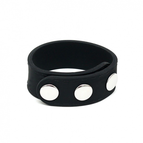 Enyhén puha, kissé rugalmas szilikonból készült, patentokkal méretre állítható pénisz vagy here -gyűrű. Három átmérőre állítható: 3,5 cm - 4 cm - 4,5 cm - 5 cm - 5,5 cm - 6 cm Teljes hossza: 22 cm Szélessége: 2 cm Anyaga: szilikon, fém patentokkal A