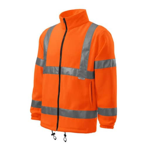 Polár, 100 % poliészter, bolyhosodás ellen kezelve 3M fényvisszaverő szalagok jólláthatósági ruházat, hőtartó, fluoreszkáló anyag, tanúsított 3M fényvisszaverő csíkok , beslő nyakszegély saját színű anyagból, műanyag cipzár teljes hosszban, 01 színben,