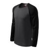 Single Jersey, 100 % pamut kétszínű tervezéssel (kivéve a 00, 01, 05 színt)oldalvarrással1:1 bordás kötésű keskeny nyakszegély 5 % elasztánnalhátsó nyakszegély belső oldala különböző anyagbólhosszú, raglán ujjú mandzsettával1: 1 bordás mandzsetta 5 % e