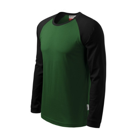 Single Jersey, 100 % pamut kétszínű tervezéssel (kivéve a 00, 01 színt), oldalvarrással, 1:1 bordás kötésű keskeny nyakszegély 5 % elasztánnal, hátsó nyakszegély belső oldala különböző anyagból, hosszú, raglán ujjú mandzsettával, 1: 1 bordás mandzsetta