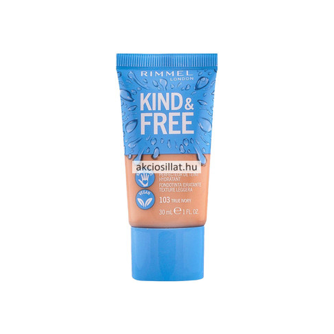 Rimmel London Kind & Free Alapozó 103 True Ivory 30ml Kind & Free alapozó 100% vegán, könnyű és tiszta formulával rendelkezik, amely egységesíti és hidratálja a bőrt. Az antioxidáns vitaminkomplexnek és az aloe vera kivonatnak köszönhetően friss és hidr