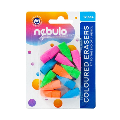A ceruza végére húzható színes radírok. 12 db-os készlet. PVC mentes, egészségre káros anyagot nem tartalmaz. 1 db radír mérete: 2,6*1,3*1,2 mm Katalóguskód: 32240 Hiteles tájékoztatás: Elkötelezettek vagyunk termékeink biztonságának garantálásáért
