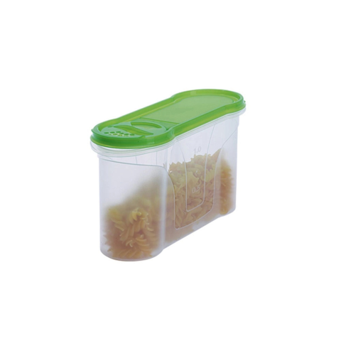 A fedél egyik oldalán található szita megkönnyíti a finomabb tartalom kiszórását a dobozból. A másik oldalon van a nagyobb nyílás a tartalom kiöntésére szolgáló funkcióval. BPA mentes, mosogatóban is mosható és fagyálló.