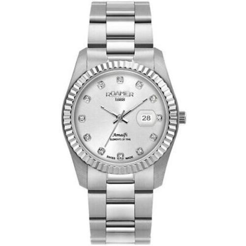 A nemesacél óraház 34 mm nagyságú - zafír üveggel. A nemesacél szíj 16 mm széles. Világító mutatók, dátumkijelzés nagyítóval, 10 ATM vízálló