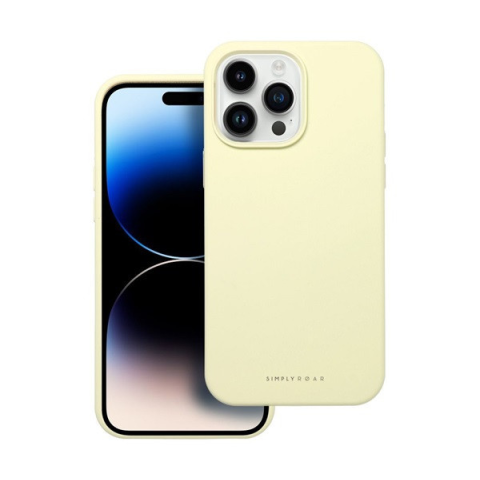 1 kép ROAR Apple iPhone 14 Pro Max prémium szilikon tok velúr béléssel, világossárga