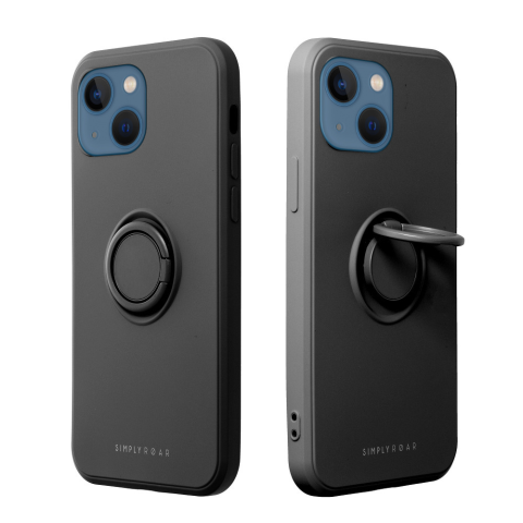 1 kép ROAR Telefontok iPhone 13 - Roar Amber fekete szilikon tok, kitámasztó ujjgyűrűvel