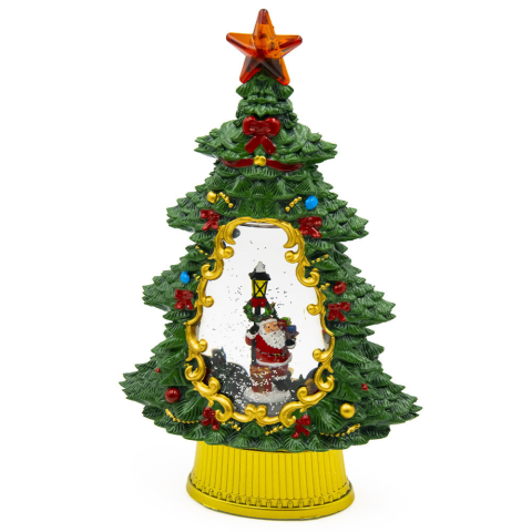 Robi Karácsonyfa formájú hógömb Mikulással, forog és zenél