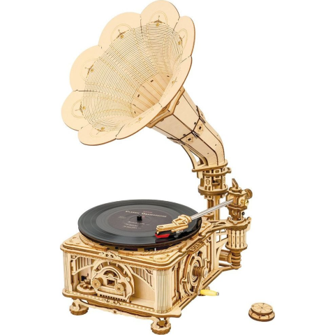 1 kép Robotime játék - 3D fa mechanikus kirakós Gramofon (elektromos hajtás) (LKB01D)