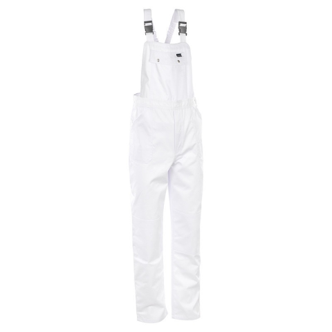 ECO white mellesnadrág, kertésznadrág, fehér Alapanyag: 65% poliészter, 35% pamut, 240 gr/m Fehér színben Két foltzseb, egy szitázható mellzseb, egy farzseb, egy szerszámtartó zseb Állítható hosszúságú, gumírozott vállpánt Állítható gumírozott de