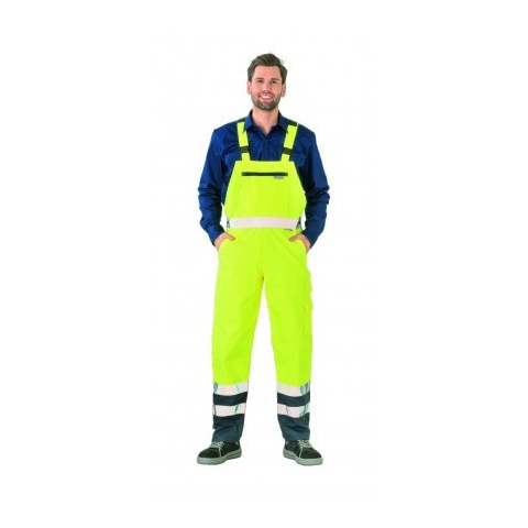 Jólláthatósági, eső elleni mellesnadrág, kertésznadrág, 3M csíkkal, narancssárga/tengerkék Tulajdonságok: Alapanyag: 100% poliészter, 3M reflexcsíkkal ellátva 2 elülső foltzseb, 2 farzseb, 1 mellzseb, 1 szerszámzseb, 1 oldalzseb Húzózáras slicc Gu