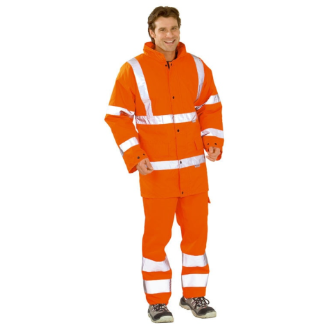 Jólláthatósági, munkavédelmi esőkabát narancssárga Tulajdonságok: Alapanyag: 100% poliészter Narancssárga színű Kivehető bélés és kapucni Reflexcsíkkal ellátva Méretek: | 44 | 48 | 52 | 56 | 60 | 64 | 68 |