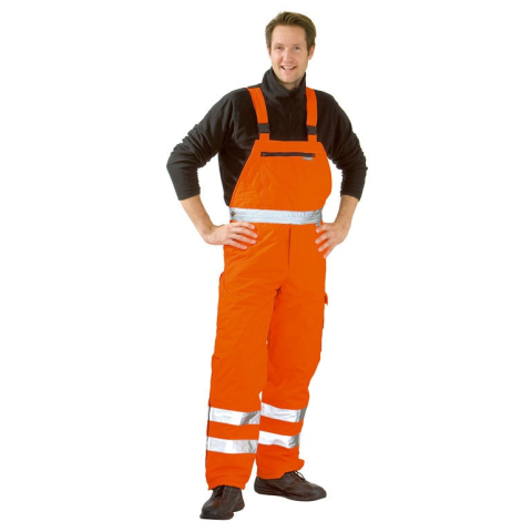 Jólláthatósági, munkavédelmi melles esőnadrág, narancssárga Tulajdonságok: Alapanyag: 100% poliészter, 3M reflexcsíkkal ellátva Narancssárga színű Zipzáras slicc Zsebek: 2 elülső, 2 hátsó, 1 oldalsó, 1 szerszámos, 1 mell Gumírozott derék és vállp