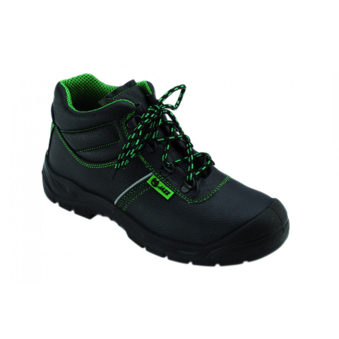 S1 SRC munkavédelmi bakancs, acélkaplis Marhabőr felsőrész Acélkaplis (200J) Olajálló, SRC csúszásmentes kétrétegű PU fröccsöntött talp Felhúzott orr a nagyobb kopás ellen Külső oldalon fényvisszaverő csík Párnázott nyelv, szártető, formáz