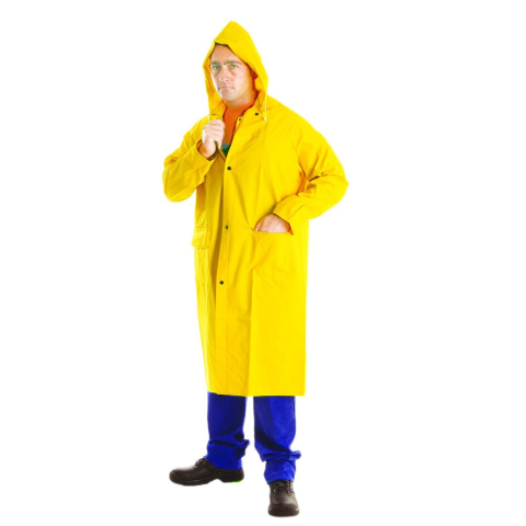 PVC esőkabát, sárga, hosszú - Sárga színű - Patentos záródás, 2 elülső zseb - Térdig érő - Kapucnis