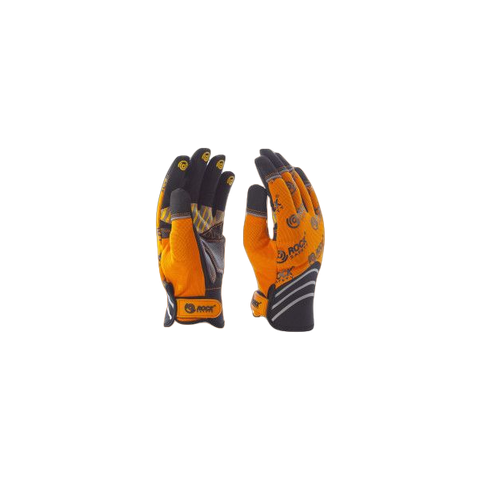 • Szintetikus bőr és műbőr kombinációja • Körömvédő • Narancssárga rugalmas kézhát • Tépőzáras csuklórész • Fényvisszaverő minták a kézháton • Csúszásgátló tenyér és ujjvégek • Méretek: M-2XL