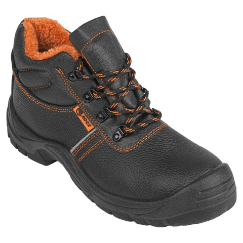 • Marhabőr felsőrész • Megerősített, felhúzott orrész • Acélkaplis, talplemezes • Formázott talpbetét • Hideg elleni szigetelés (CI) • Meleg, téli műszőrme bélés • Olajálló, csúszásmentes kétrétegű PU fröccsöntött talp (SRC) • Párnázott szártető és nyelv • Külső oldalon fényvisszaverő csík • Szín: fekete-narancs