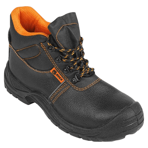 S1P SRC munkavédelmi bakancs, acélkaplis (200J), talplemezes. Olajálló, SRC csúszásmentes kétrétegű PU fröccsöntött talp. Felhúzott orr a nagyobb kopás ellen. Külső oldalon fényvisszaverő csík . Párnázott nyelv, szártető, formázott talpbélés. EN20345