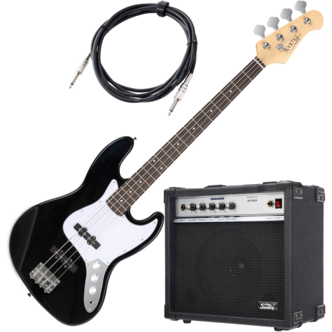 1 kép Rocktile Fatboy Ii Bk E-Basszusgitár Fekete Set Soundking Basszuserősítővel + Kábel