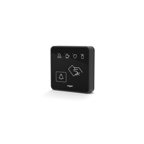 ROGER folyosói olvasó terminál, 13.56 MHz Mifare kártyaolvasó, 15 cm olvasásái távolság, 4 - ne zavarja, segítség, takarítást kérek és foglalt szoba - jelző LED, csengőgomb, tápfeszültség 12 Vdc, átlagos áramfogyasztás 60 mA, szabotázskapcsoló, közvetlen