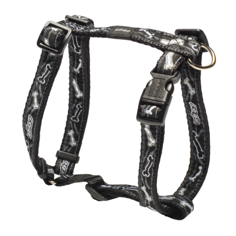 ROGZ FANCY DRESS H-Hám XL Fekete csontmintás nyakörv, póráz, hám kutyáknak árgrafikon
