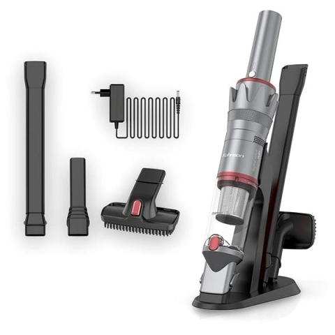 Morzsaporszívó - akkus, használható minden padlótípushoz, állatszőrhöz, tisztítási mód felszívás és száraz tisztítás, Li-ion akkumulátor, HEPA H11 szűrő, 120 W teljesítmény, 75 dB zajszint, műanyag gyűjtőtartály 0,5 l űrtartalommal, vezérlés a készüléken, töltöttségjelző, mérete 41,5 × 7 × 7,5 cm (Ma×Sz×Mé), tömege 0,7 kg, szűrő és portartály a csomag része, fekete és szürke kivitel A kitűnő Rohnson akkumulátoros kézi porszívó a segítség