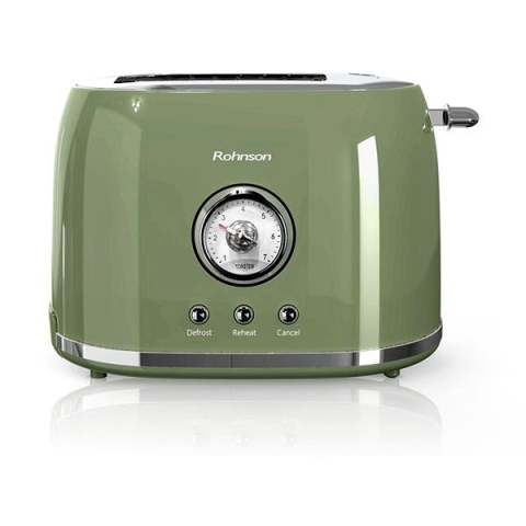 Kenyérpirító - 2 szeletes, pirítás szabályozása, kiolvasztás, azonnali befejezés gomb, automatikus kikapcsolás, magas kiemelés és középre igazítás, kivehető morzsatálca, teljesítményfelvétele 800 W, anyaga rozsdamentes acél és fém, Szívesen eszel pirítóst, de otthon nem tudod elkészíteni, vagy nem szereted, ha megszívja magát olajjal? Ebben az esetben biztosan tetszeni fog a minőségi Rohnson kenyérpirító. Ezzel a modellel képes