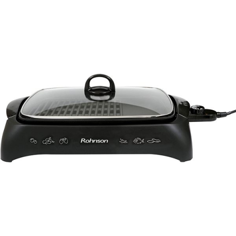 Elektromos grill - asztali és hordozható, 2200 W teljesítmény, 8 program, grill anyaga alumínium, grillezőfelület anyaga alumínium, 40 cm × 30 cm grillfelület, 1 db grillfelület, tömege 4,6 kg, tápkábel hossza 1,18 m, tapadásmentes felület, csepptálca, fedő, csúszásgátló lábak, hőszabályzás, hőbiztosíték és kivehető rács Összehasonlítva a klasszikus, szén Grill tartozékok Rohnson számos előnnyel jár. Hiánya miatt a szén használata nem csak gyorsabb (csak