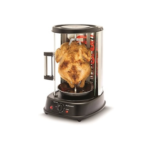 Elektromos grill - asztali, nyársas és függőleges, 1500 W teljesítmény, tömege 5,1 kg, időzítő, csepptálca és hőbiztosíték A ROHNSON R-2530 függőleges grill nagyszerű segítőtárs csirke, gyros, nyársak, halak és zöldségek készítéséhez. Teljesen üveg tolóajtajának köszönhetően végig figyelemmel követheted a grillezés folyam