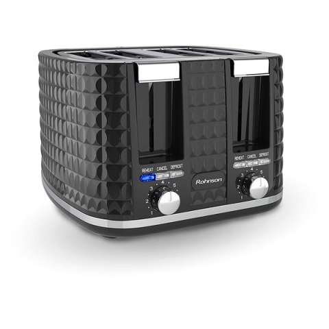 Kenyérpirító - 4 szeletes, pirítás szabályozása, ismételt melegítési funkció, kiolvasztás, azonnali befejezés gomb, biztosíték a kenyér elakadása ellen, automatikus kikapcsolás, középre igazítás és fényjelzés, kivehető morzsatálca, teljesítményfelvétele 1500 W, anyaga műanyag és fém, fekete kivitel Szereted a pirítóst, de nincs meg hozzá a szükséges felszerelésed, és nem szereted, amikor a klasszikus serpenyőben sütés közben megszívja magát olajjal?