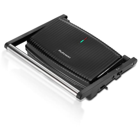 Szendvicssütő - 2 szendvics egyidejű készítéséhez, négyszög sütőlapok, tapadásmentes felület, a csomagban található sütőlapok alkalmasak grillezéshez, sütőlapok mérete 18 × 27,5 cm (Ma×Sz), zárható, hőszigetelt markolat és csúszásgátló talpak a csomag része, 1500 W teljesítmény, műanyag burkolat, fekete kivitel, mérete 11 × 31,7 × 27,8 cm (Ma×Sz×Mé) Szereted a napot egy finom pirítóssal kezdeni vagy paninivel? Akkor nem hiányozhat a konyhából egy Roh