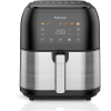 Airfryer - digitális vezérlés, 80 - 200 °C között szabályozható hőmérséklet, kijelző, túlmelegedés elleni védelem, mosogatógépben mosható részek, időzítő, hőmérséklet szabályozás és automatikus programok, 7 program, kivehető edény és csirkesütő rács, 1700 W teljesítmény, 8 l-es edény, alumínium edény, 1 fritőz kosár, tömege 5,2 kg, méretei 30,5 × 26,5 × 46,9 cm (ma × szé × mé), fekete és ezüst kivitel Horkovzdušná fritéza Rohnson vám připra