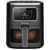 Airfryer - digitális vezérlés, 80 - 200 °C között szabályozható hőmérséklet, tapadásmentes felület, kijelző, túlmelegedés elleni védelem, termosztát, fedél nyílással, mosogatógépben mosható részek, belső világítás, időzítő, automatikus kikapcsolás, hőmérséklet szabályozás és automatikus programok, 8 program, kivehető edény, 1450 W teljesítmény, 5 l-es edény tapadásmentes felülettel, 1 fritőz kosár, tömege 3,7 kg, méretei 31 × 26,7 × 35 cm (ma
