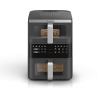 Airfryer - tapadásmentes felület, teflon, kijelző, túlmelegedés elleni védelem, termosztát, fedél nyílással, belső világítás, időzítő, automatikus kikapcsolás, hőmérséklet szabályozás, dupla főzés és automatikus programok, rozsdamentes edény tapadásmentes felülettel, 2 fritőz kosár, tömege 9,26 kg, méretei 40 × 28,4 × 42,8 cm (ma × szé × mé), fekete kivitel