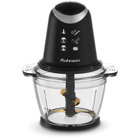 Aprítógép - 500 W teljesítmény, 1000 ml-es edény, 2 sebességfokozat, 1 db edény, mosogatógépben tisztítható, anyaga: üveg A kiváló Rohnson elektromos aprítógép egy tökéletes konyhai segítő, amely megkönnyíti az alapanyagok előkészítését a főzéshez. A kitűnő 500 W-os Rohnson R-5112 aprítógép gond nélkül megbirkózik a sárg