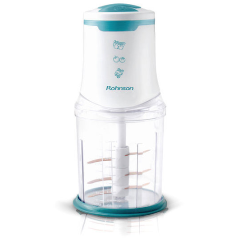 Aprítógép - 650 W teljesítmény, 1000 ml-es edény, 2 sebességfokozat, 1 db edény, anyaga: műanyag A kitűnő Rohnson elektromos konyhai aprítógép megkönnyíti az alapanyagok előkészítését a főzéshez. A klassz 650 W teljesítményű Rohnson R-5119 aprítógép probléma nélkül megbirkózik a hagyma, paradicso