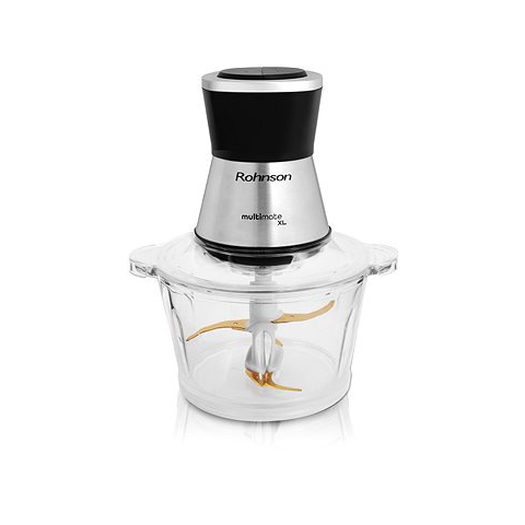 Aprító - élelmiszerhez, rozsdamentes acél burkolat, nagy teljesítményű, 500 W-os motor, jégaprításra alkalmas, 4 kiváló minőségű, S alakú titán kés, nagyméretű, BPA-mentes üvegedény 2 l-es kapacitással, gumi tömítéssel ellátott, átlátszó fedő, 2 sebesség, az edény és a kések mosogatógépben moshatók Sokoldalú segítő minden konyhábanA Rohnson R-5120 Multimate XL aprítógép ideális készülék minden háztartásba. Zöldségek, gyümölcsök, diófélék