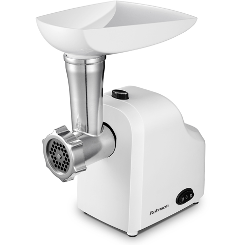 Húsdaráló - elektromos, teljesítmény 1000 W, gumi lábak és hátramenet, virsli- és kolbásztöltés, paszírozás és őrlés, 1 sebességfokozat, húsfeldolgozási sebesség 2 kg/perc, darálás nagysága 5 és 7 mm, nyomóprés, kebbe, kolbásztöltő tartozék és daráló betét a csomag része, daráló mérete 2, anyaga műanyag és fém, mérete 23,5 × 18,5 × 27 cm (Ma×Sz×Mé), tömege 2 kg, fehér és ezüst kivitel Ha imádsz főzni, egy húsdarálónak nagy hasznát veheted