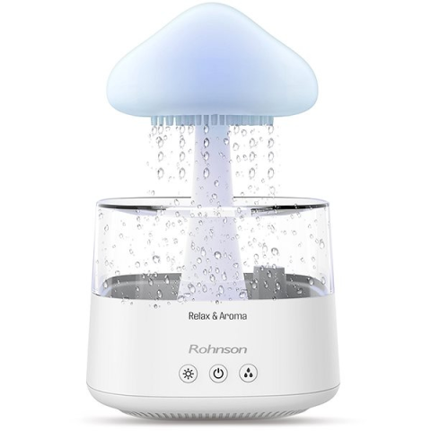 Párásító - ultrahangos párásítás, max. 10 m² nagyságú helyiségekbe ajánlott, 7 W teljesítményfelvétel, 10 ml/óra párásítási teljesítmény, 0,45 l-es tartály, 30 dB zajszint, funkciók: háttérvilágítás, automatikus kikapcsolás, aromadiffúzor és csendes üzemmód, méretei: 16,4 × 26,1 × 16,4 cm (Sz×H×Mé), fehér kivitel Párásító és aromadiffúzor színes háttérvilágítássalA Rohnson R-9519 Relax & Aroma 2in1 párásító készülékkel kedvenc aromaola